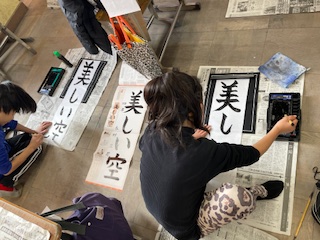 第二弾の書き初め「美しい空」を書きました。