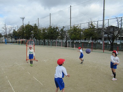 体育では、「パスゲーム」の学習を始めました。