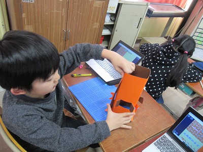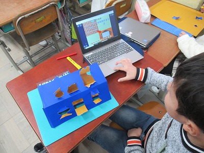 図工では、「まどからこんにちは」の制作を進めています。