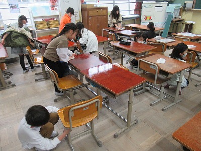 今日まで1年間過ごした教室を最後はみんなできれいに掃除しました。