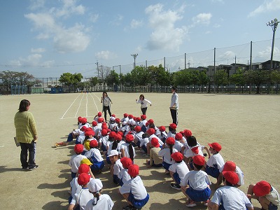 運動場を元気いっぱい走り回っています!