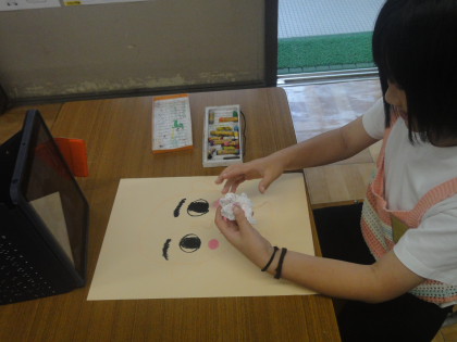 図工の学習で自分の顔を描きました。