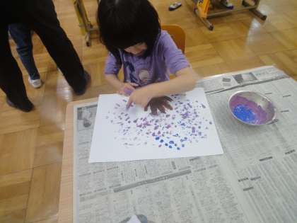 花や葉っぱは指でスタンプをして表現しました。