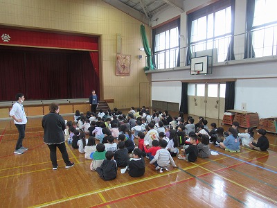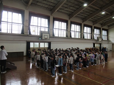 来週の「1年生をむかえる会」に向けて、学年合同練習をしました。