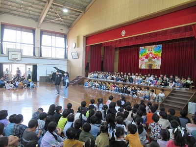 全校みんなで1年生の入学をお祝いしました。