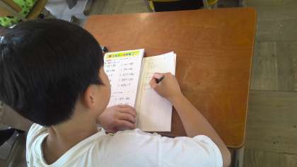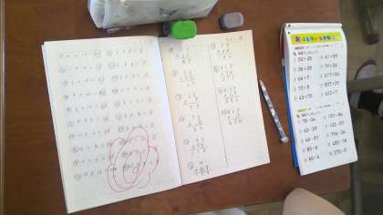 きょうはステップタイムに2年生の復習をしました。たし算とひき算の筆算の復習です。ノートに丁寧に書いて練習していました。くり上がりやくり下がりに気を付けて計算していました。