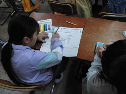 1年生に分かりやすく伝わるように,言葉を考えながらグループで案内カードを書きました。