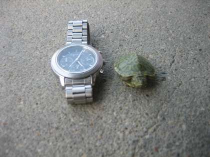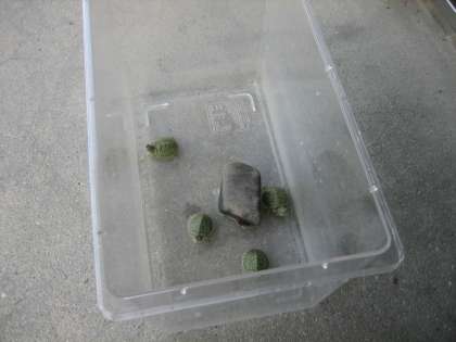 先日,中庭の池周辺で産卵されたカメの赤ちゃんが産まれました。