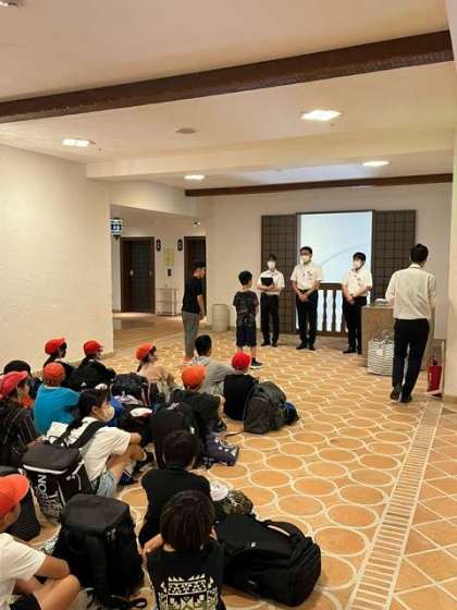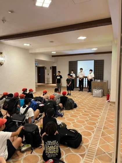 退館式。ホテルスタッフの方々に感謝の気持ちを伝えました。