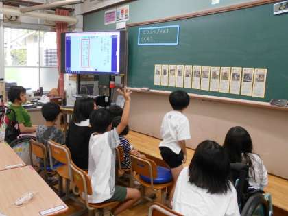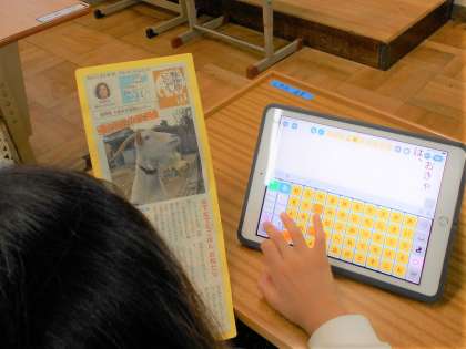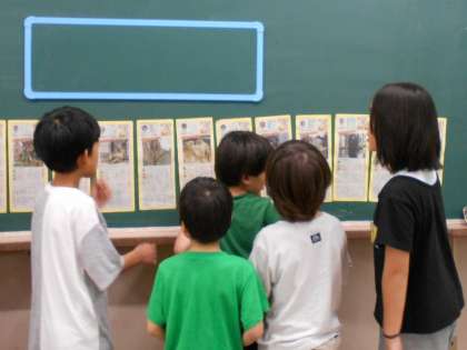 動物園への遠足に向けて、新聞で紹介された動物の記事を使って学習しました。最初に、いろいろな動物の記事から、クイズを作りたい記事を選びました。次に、新聞を読んで好きな食べ物や性格などを見つけてクイズを作り、説明も付け加えました。最後に、作ったクイズで、クイズ大会をしました。新聞を使って、動物のことを知ることができました。