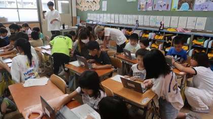 1年生の子どもたちは、学校でGIGA端末を使うのは、ほとんど初めてだったので