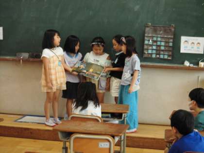 クイズに正解した友だちや感想を発表した友だちに,折り紙で作った景品をプレゼントしていました。