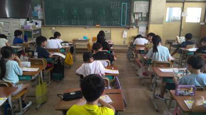 「自分たちで漢字の学習を進めてみよう」ということで、1学期の途中から順番に前に立って、お手本の漢字を書いたり、筆順の確認をしたり、漢字の学習を進めています。チョークで大きな字を書くことや正しい筆順で書くことはなかなか難しいですが、2学期のチャレンジの一つです。何事も少しずつ(^^♪
