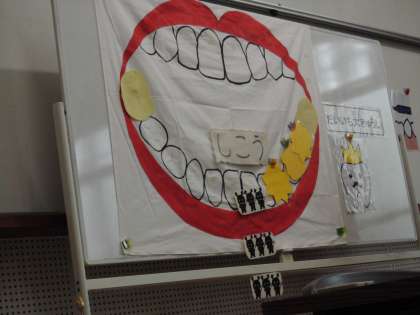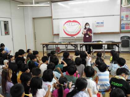 歯科衛生士さんにきていただいて、虫歯のでき方や正しい歯磨きについて教えていただきました。