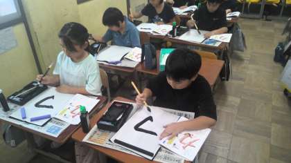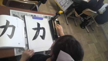 2学期の毛筆学習が始まりました。「はね」や「おれ」の筆使いが難しいですが、何とか頑張ってました。みなさんは2学期にどんな力を身につけたいですか。