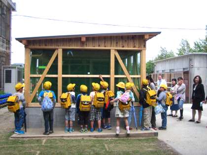 元気よくとび回っていました。さっそく子ども達が,その様子を楽しそうに眺めに集まってきました。