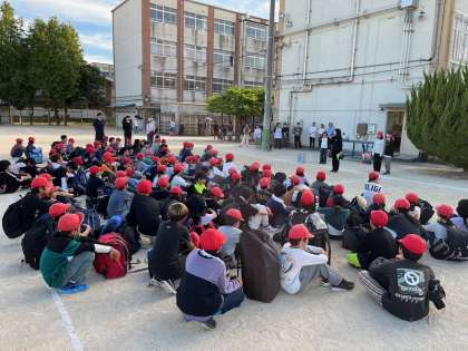 解散式 たった今5年生の子どもが花背山の家から帰って来ました。この宿泊学習で学んだ「挑戦」「友情」「協力」の気持ちを忘れずに、これからの学校生活を過ごしてほしいと思います。