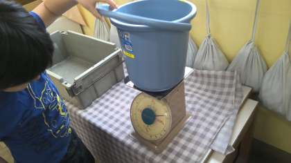 算数の「重さ」の学習で身の回りの物の重さの計測をしました。どんなはかりで測るのがいいのか話し合いながら、計測する姿が見られました。