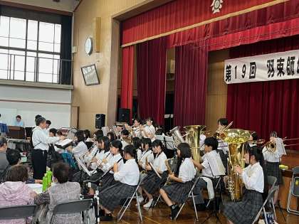 この地域行事に、本校「音楽部」の子どもたちも参加し合奏や合唱を披露させていただきました。