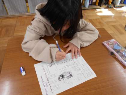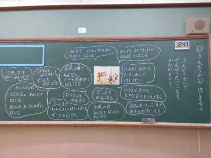 11月6日(水)の道徳では、「運動会がはじまるよ」のお話を聞き、運動会の目標を決めました。「楽しく「(徒競走を」最後まであきらめずに走る。」「台風の目で友達と合わせて走る。」「応援合戦で大きな声で応援する。」「ダンスをはずかしがらずにおどる。」など、それぞれの目標を考えて発表しました。本番の運動会では、みんなが自分の目標に向かってがんばることができました!