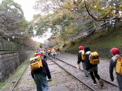 動物園を出てからは、インクラインを歩き、疏水に関係する場所や、実際に疏水分線の横を歩きました。立ち止まり、ワークシートに熱心にメモをする様子も見られました。
