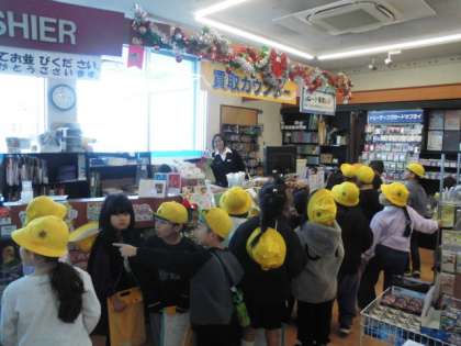大垣書店では、問屋さんから届いた本を透明の袋で包装したり、付録をつけたりする仕事について教えていただきました。ダックスでは商品数を教えていただき,子どもたちはその量の多さにびっくりしていました。新鮮市場では、肉や魚をパックに詰める作業場を見学させていただきました。