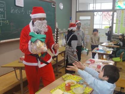 給食時間にサンタさんがやってきました!