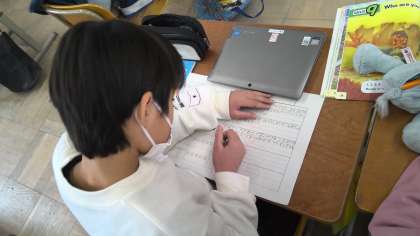 きょうは外国語の時間にWho are you?のクイズづくりをしました。来週はクイズ大会です。楽しみですね☆彡