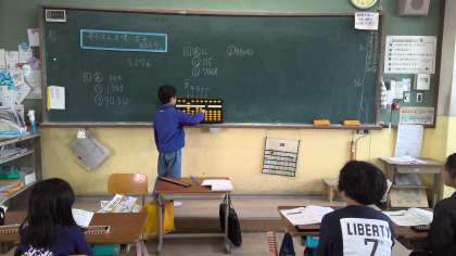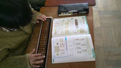 初めてそろばんを触る子も、習い事でそろばんを習っている子もいますが教え合ったり、見せ合ったりと楽しそうに数を入れ、計算する姿が見られました。