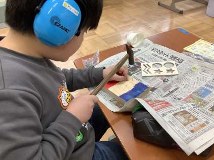 はじめてのくぎ打ちを体験し、