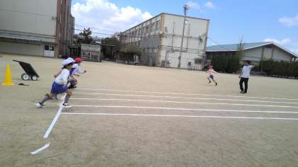 3年生になって初めての体育は50m走でした。「よーいドン」の合図で真剣に走り出します。ゴール前では嬉しそうに走ってくる様子が見られました。これからの体育もわくわくするね!