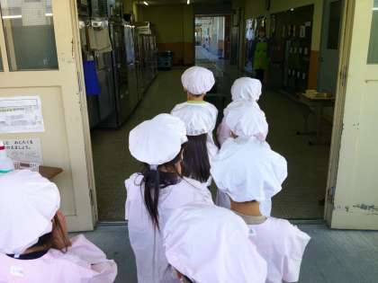 いつも食器や食缶を運んでくれています。まだまだ慣れないこともありますが、少しずつ慣れてたくさん給食を食べて、大きく成長してほしいと思います。