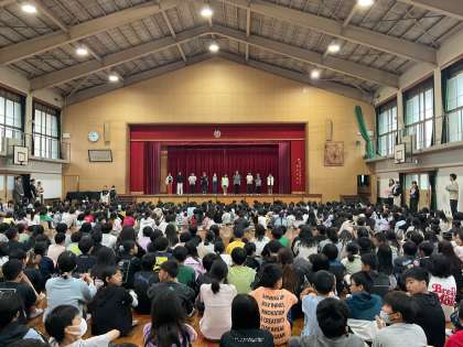 委員長紹介や児童会本部紹介などがあり、今年度の目標などを発表してくれました。