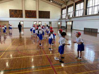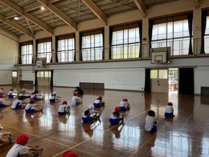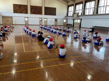 体を伸ばすと気持ちが良いことや、みんなと一緒に体を動かす楽しさを味わいました。