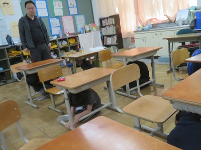 机の下に入ったり、運動場へ避難したリ本当に起こったことを考え