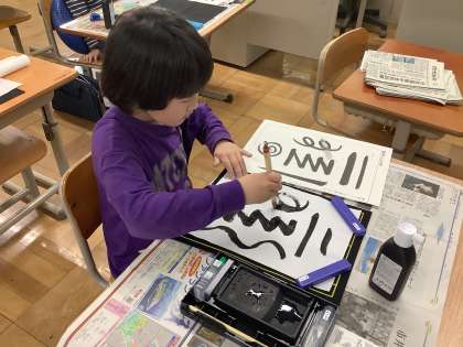 3年生の書写では初めての習字に挑戦しました。