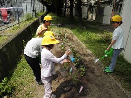 畑に野菜の苗を植えました。今年育てる夏野菜は、トウモロコシ、万願寺とうがらし、ピーマン、オクラ、トマト、キュウリ、茄子です。しっかりお世話をしたいです。