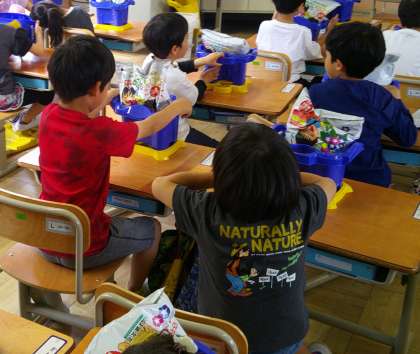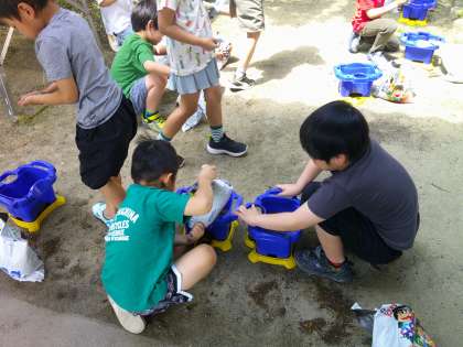 植木鉢に土や肥料を入れて、あさがおの種を植えました。説明もしっかり聞いて、子どもたち自身で進めることができました。