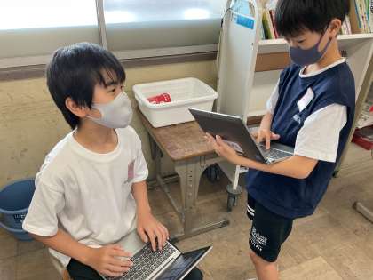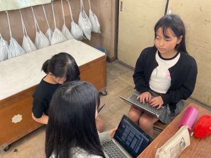 インタビューをする際に話すポイントを基にしてていねいにおこなっていました。普段の生活で何気なく話している友達同士でもかしこまった話し方で話すのは少し緊張しますね。