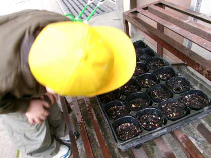 今は、ヒマワリとホウセンカの種を植え、
