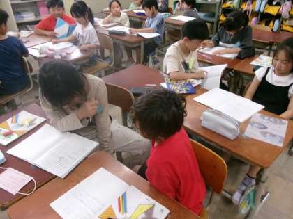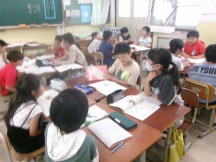 グループになって一人ずつ話し、聞き手になった人は質問をしました。話す人は、メモを元にしながら話し、聞く人は話の中心を考えながら質問をしました。質問することで、より友達のことが詳しく知ることができたようです。