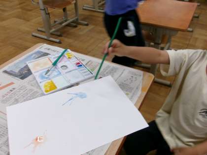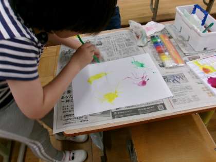 ストローで息を吹きかけて描く、吹流しに挑戦しました。