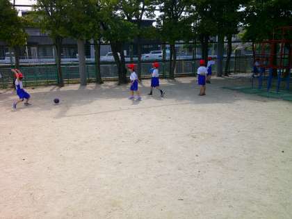 体育でボールあそびをしました。友達に転がしパスをするなど、上手にボールを使って楽しみました。