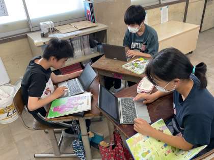 日本文化について、深く調べたいテーマを決めてチームごとに調べ学習を行なっています。