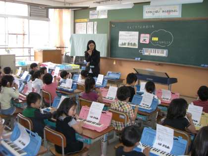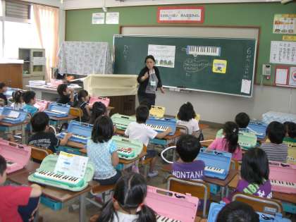 けんばんハーモニカの基本的な扱い方について学習しました。