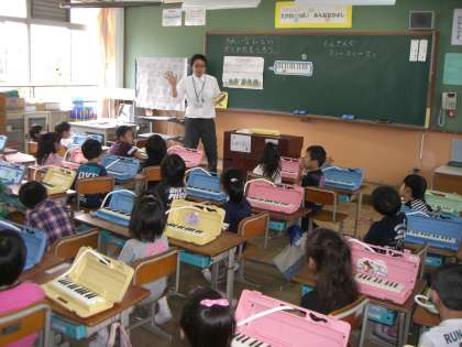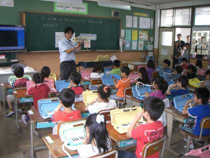 けんばんハーモニカの基本的な扱い方や奏法について学習しました。