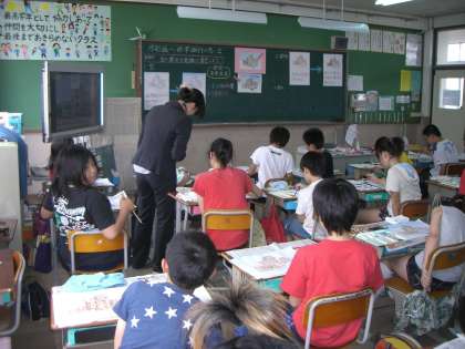 筆使いを意識して,修学旅行で見てきた原爆ドームの背景に色をぬりました。