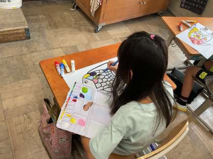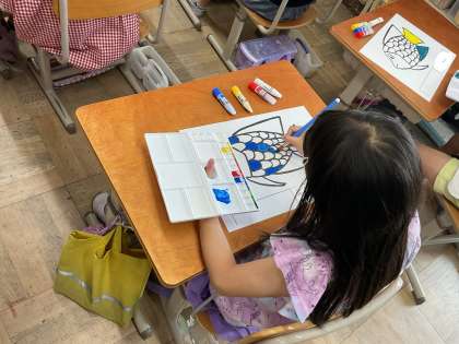 3回目は、自分たちで色作りを楽しみながら、魚に色を塗りました。