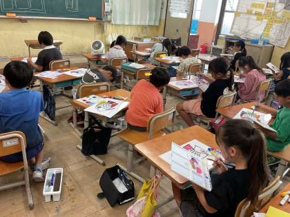 今回の図工の学習では、絵の具を使って魚に色を塗りました。