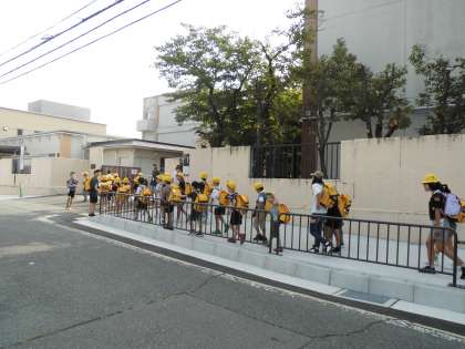 今日から子ども達は、この通路を通って安全に登下校をしていました。